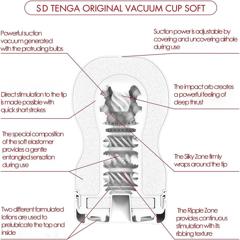Ultimate Pleasure: The white TENGA SD CUP male masturbator is made from our soft elastomer and is entwined with a special internal design that allows you to fully embrace all the details of the masturbator with stimulation directly to the tip of the penis.